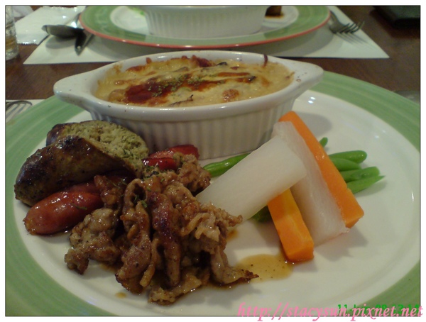 手工香腸餐 香腸的份量比我想像中少,如果沒有附上焗烤飯應該會吃不飽。