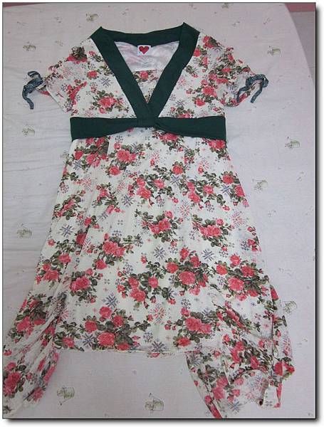 找不到地方可以吊起來拍照,只好放床上,以前我很喜歡MOSSCLUB的衣服,但洋裝倒是第一次買,之前都是買中國風的上衣,這件洋裝我最喜歡的就是不規則裙擺(自以為浪漫~)