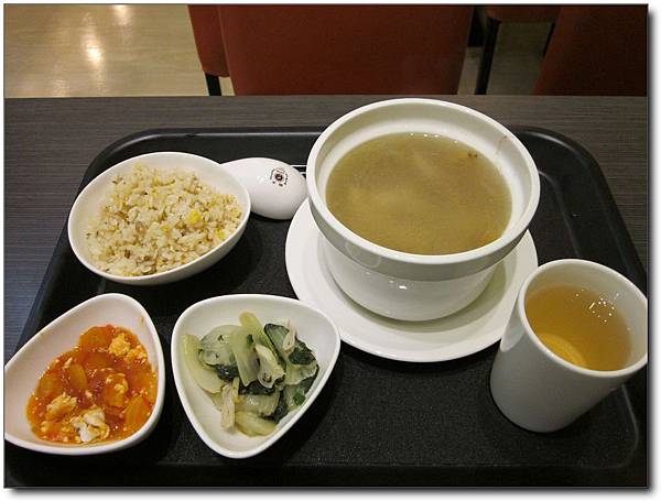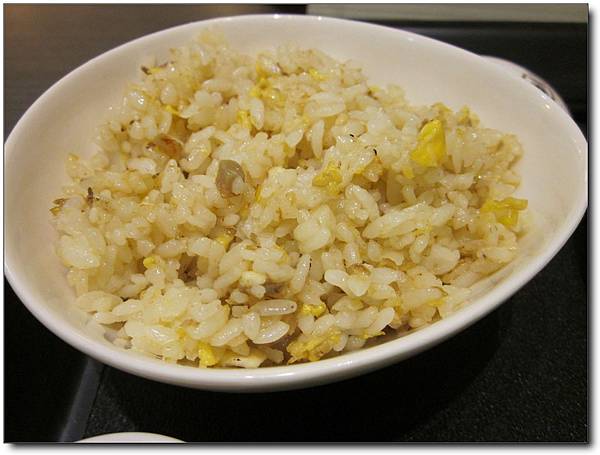 苦茶油蛋炒飯近拍,雖然主餐是雞湯而不是炒飯,但老實說這炒飯份量真的不多,我想R這餐大概沒吃飽。