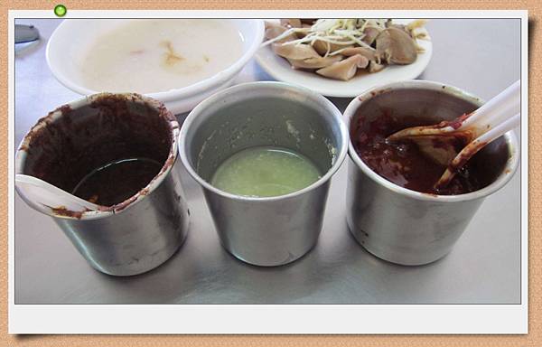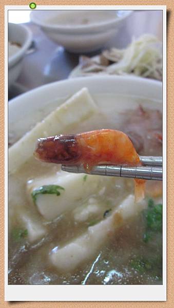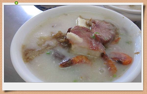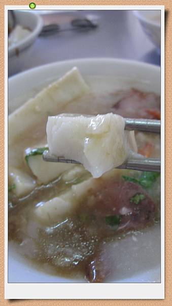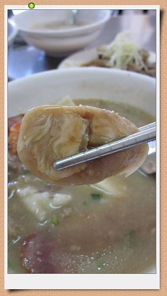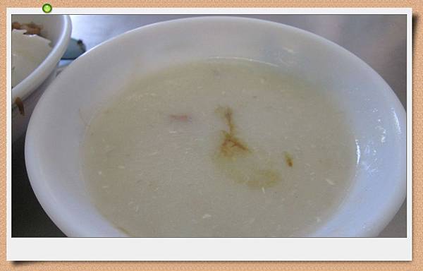 湯,聽說是用虱目魚熬的,似乎會再加入些許米漿,很濃稠,像沒有玉米的玉米濃湯。