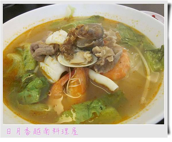 TOMYUM酸辣海鮮米粉,這種泰式酸辣湯口味配上河粉還蠻少見的,不過這邊酸辣口味不重,算是比較大眾口味的,怕酸辣的也容易入口。