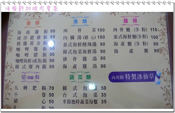 ,後來又想說,上回在報紙上看到一家在泰安街的泰國菜,到了那裡卻又發現停車位不好找,腦海中剛好閃過了海倫新加坡肉骨茶,就來吃這家了,從雲南菜→泰國菜→新加坡菜,我只能說人生的變化真是快呀~