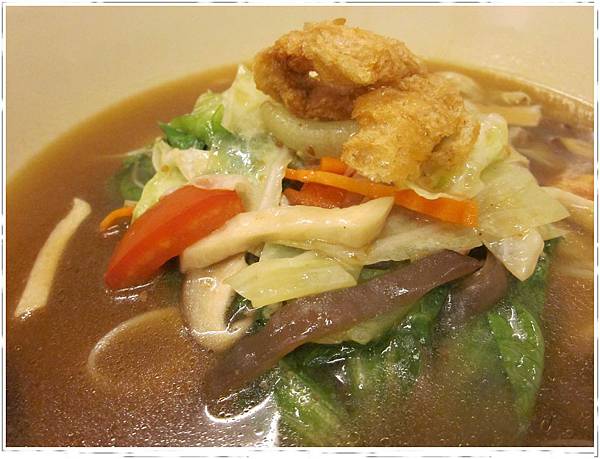不過,當天我大概熱昏了,我一直到吃到見底只剩湯了,看到湯的顏色不是偏紅色才驚覺送上來的根本不是泰式什錦湯麵,難怪我這次都沒吃到以往酸酸的泰式口味,反而是沙茶味