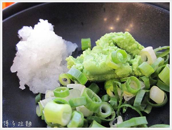 白蘿蔔泥、WASABI及蔥,醬汁的部份就應該是一般的和風醬油