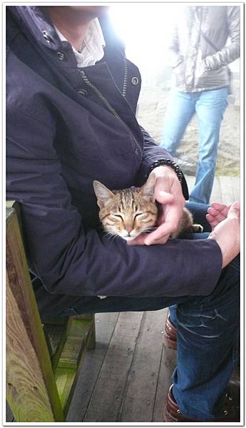 餐點快吃完時,突然有隻願意讓人親近的小貓出現,當下超開心的