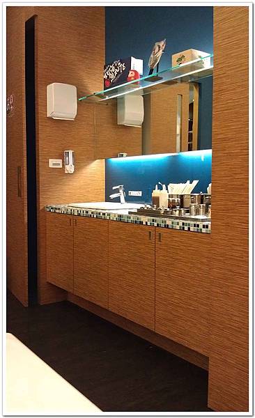 店內一角,洗手枱及調味料餐具等