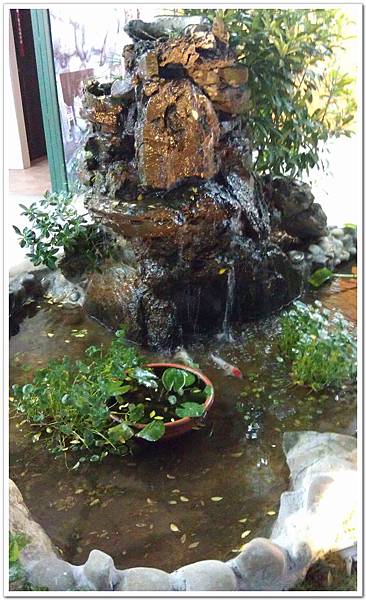 有個小水池,院子裡種了一些樹,也養了一些兔子,小鳥之類的小動物,不過都關在籠子裡,感覺有點可憐,但不關起來又有種會被白目小朋友玩死的感覺,唉,不如不要養吧。