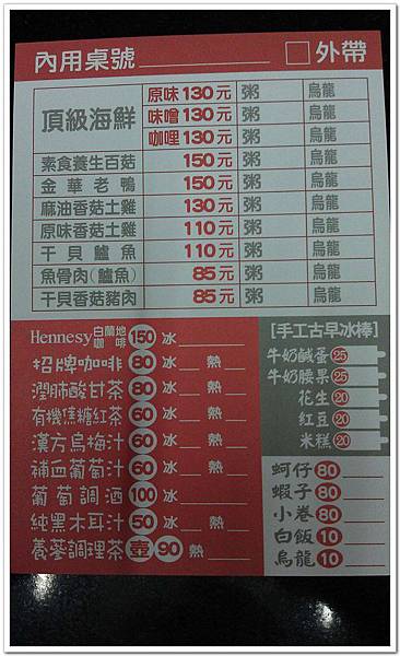 菜單,我在金華老鴨粥及麻油香菇土雞中掙扎許久。