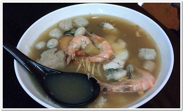 湯頭算濃郁,喝得出來是熬煮過的雞湯,和一般海鮮湯頭比較不同。